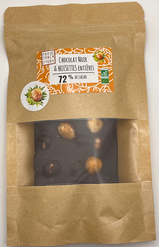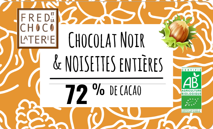 : Chocolat noir 72% de cacao, noisettes entières du Piemont