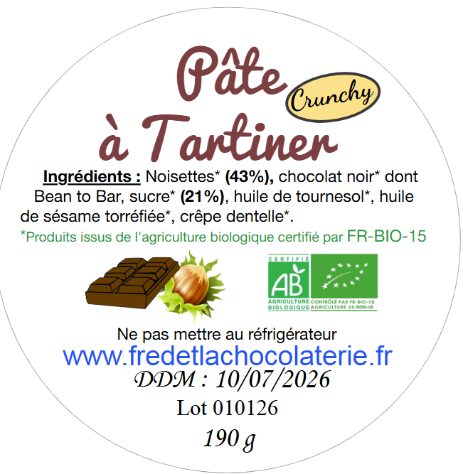 Cette pâte à tartiner au chocolat noir est SANS LACTOSE et sans huile de palme (bien sûr).